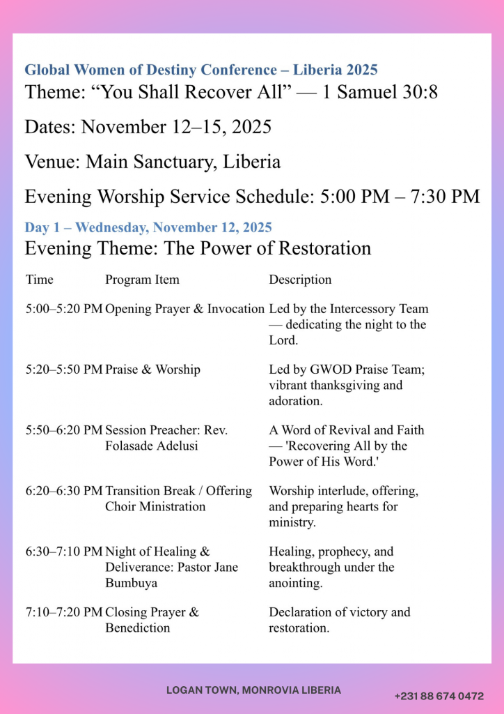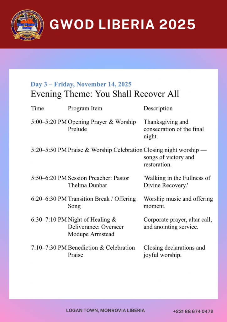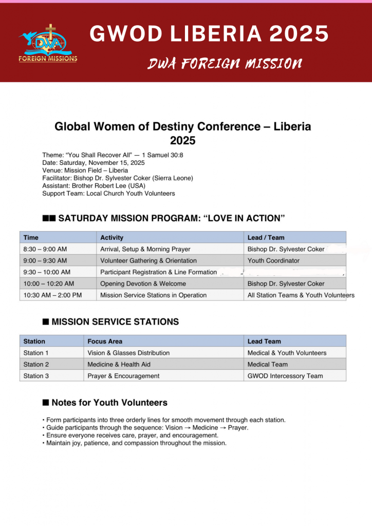 Welcome to the Page for GWOD Liberia 2025. November 12-15